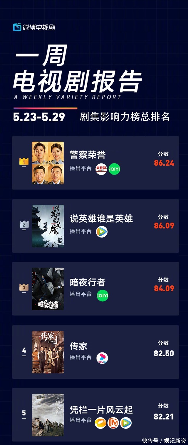 新一期劇集影響力榜單出爐,《暗夜行者》第三,《警察榮耀》第一