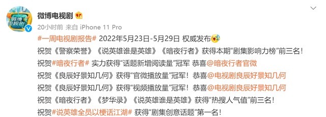 而在6月4日,微博電視劇官方微博就發(fā)布了新一周電視劇的報(bào)告,其中就有劇集影響力榜總排名,我們一起來看看有沒有你在追的劇吧!